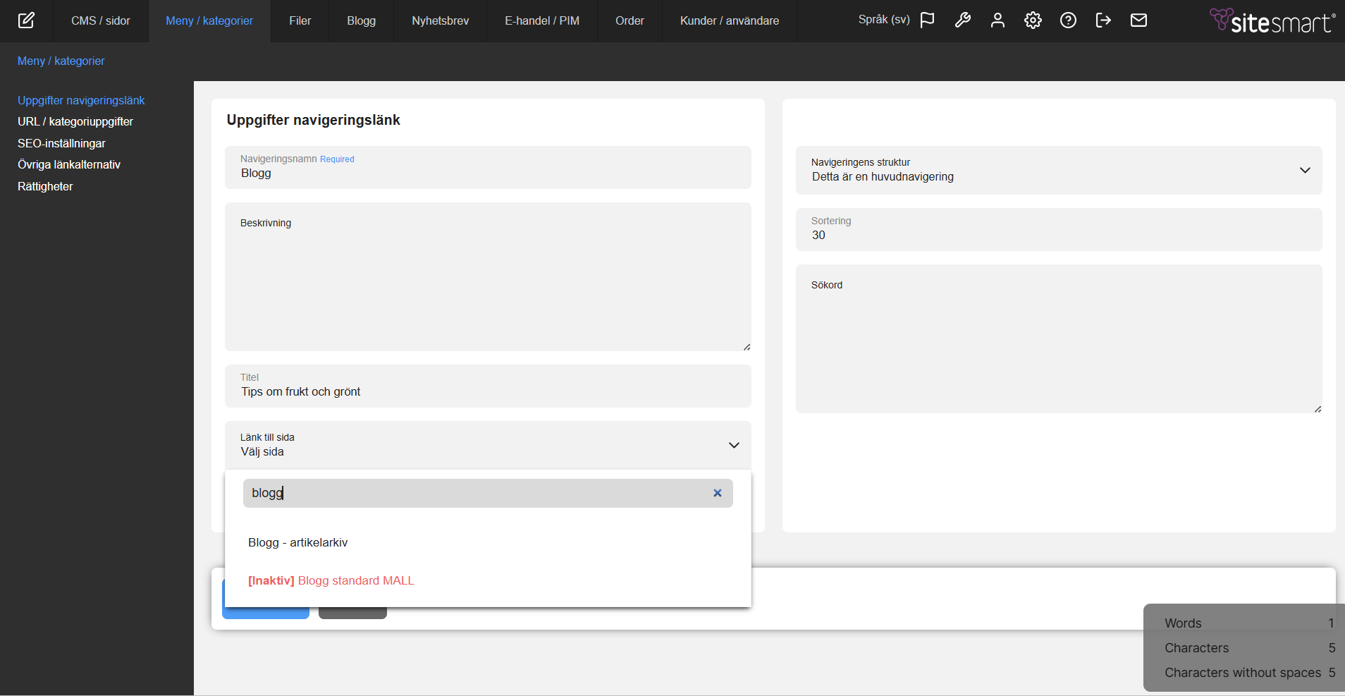 Du kan när som helst ändra ordning på navigeringen/strukturen. Gör det enkelt genom att ange siff